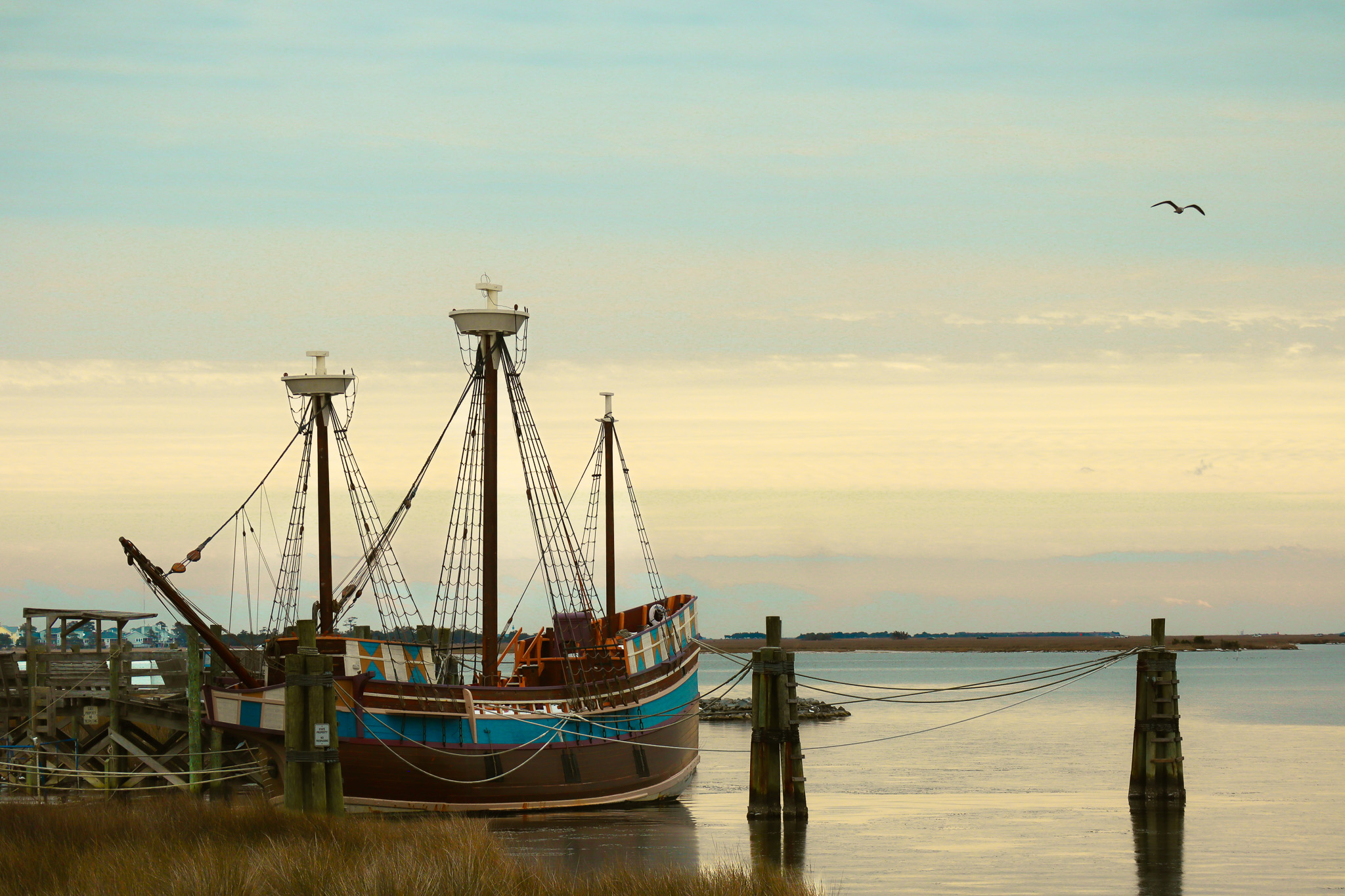 summer heat and bugs on the mainland. Ships docked on the sound side right near Jockey's Ridge