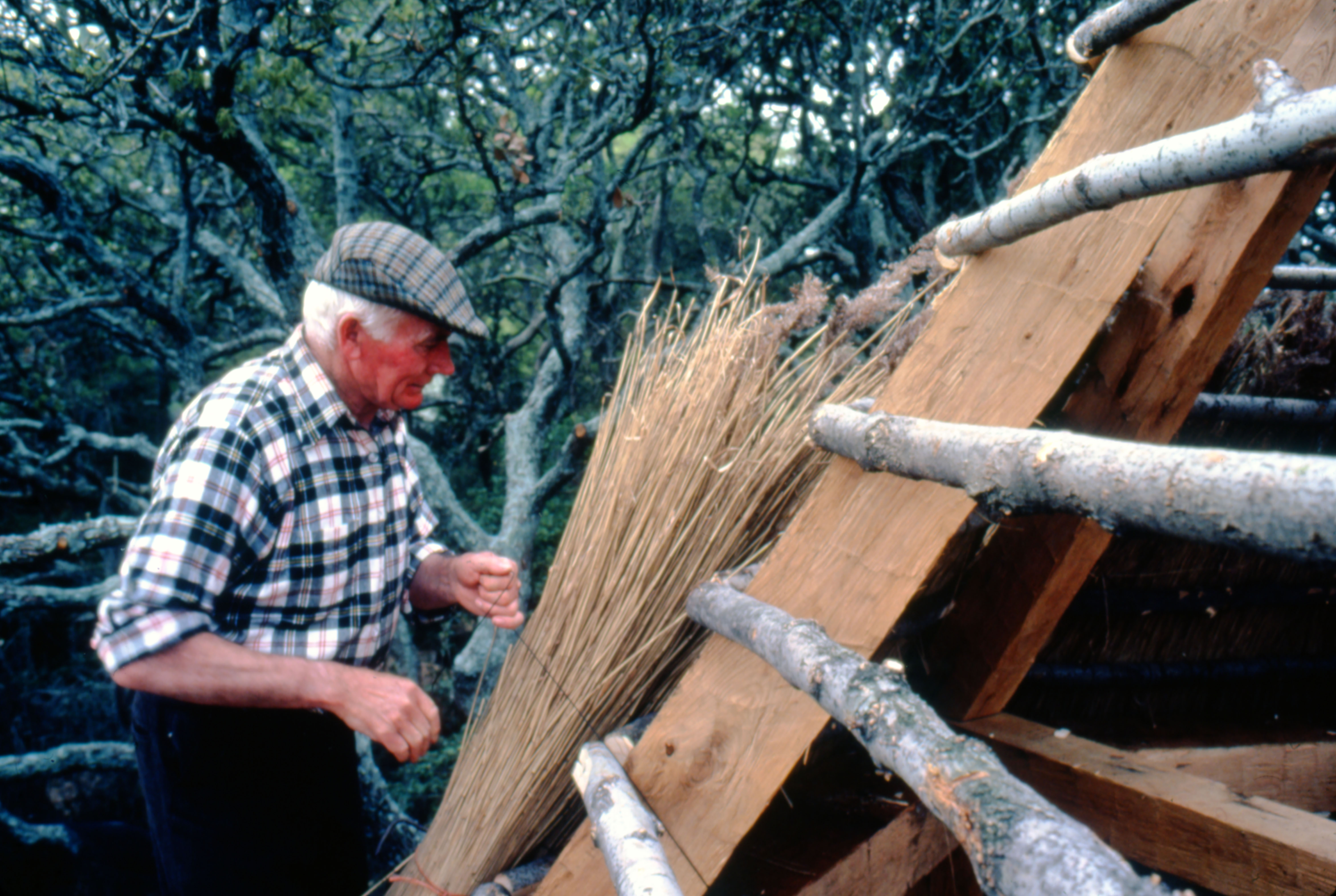 thatched roof gazebo using sixteenth century techniques, with reed sent all the way from
