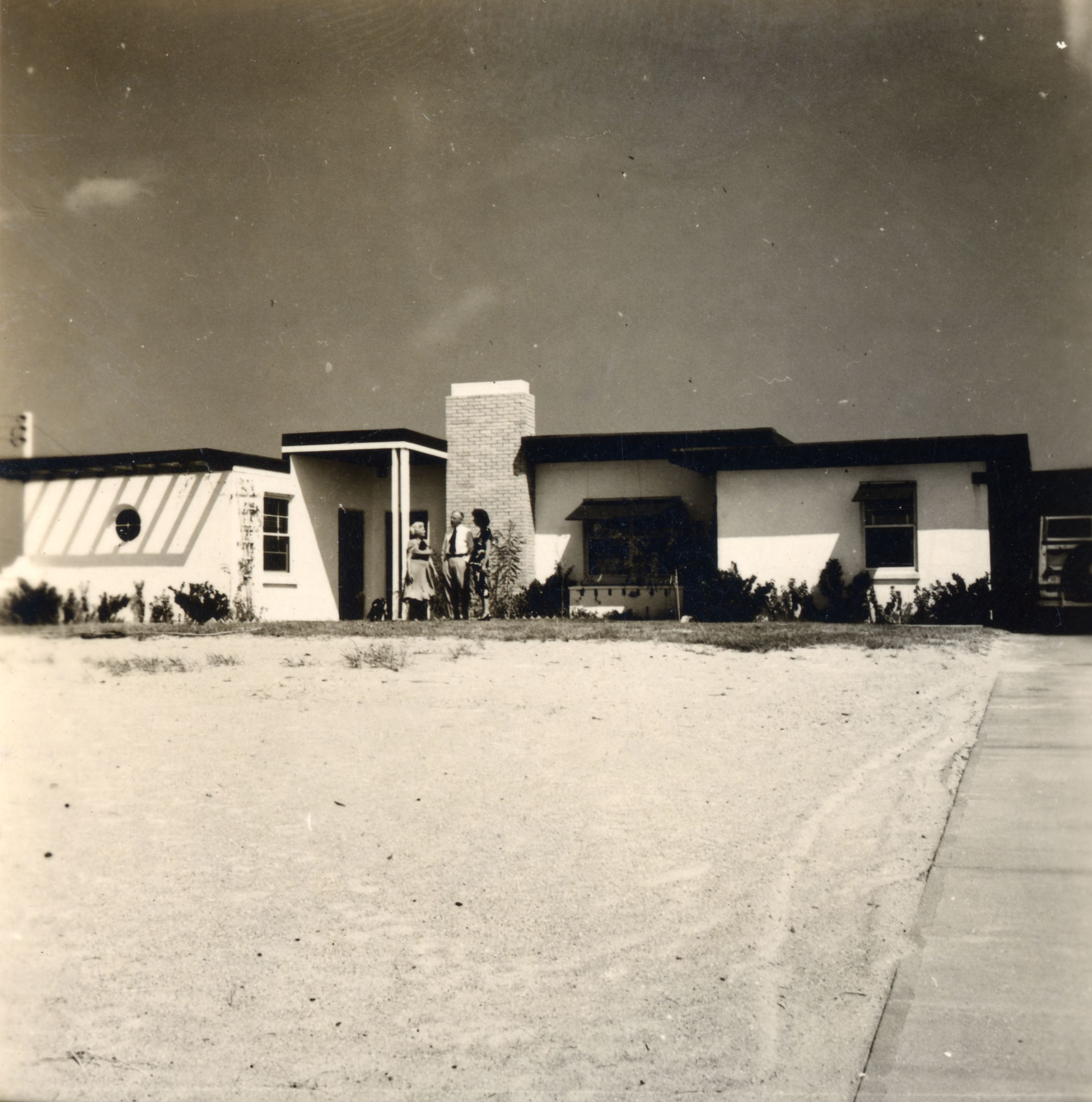 quaint architectural houses were cement block construction, with wide overhanging soffits,
