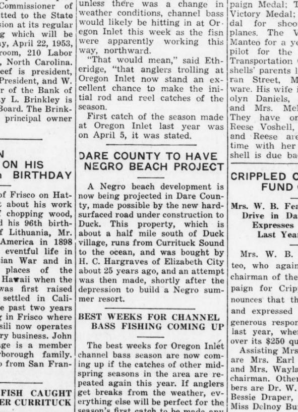 and Nags Head area, and Sunday events happening on Roanoke Island. Fishing contests, lifesaving